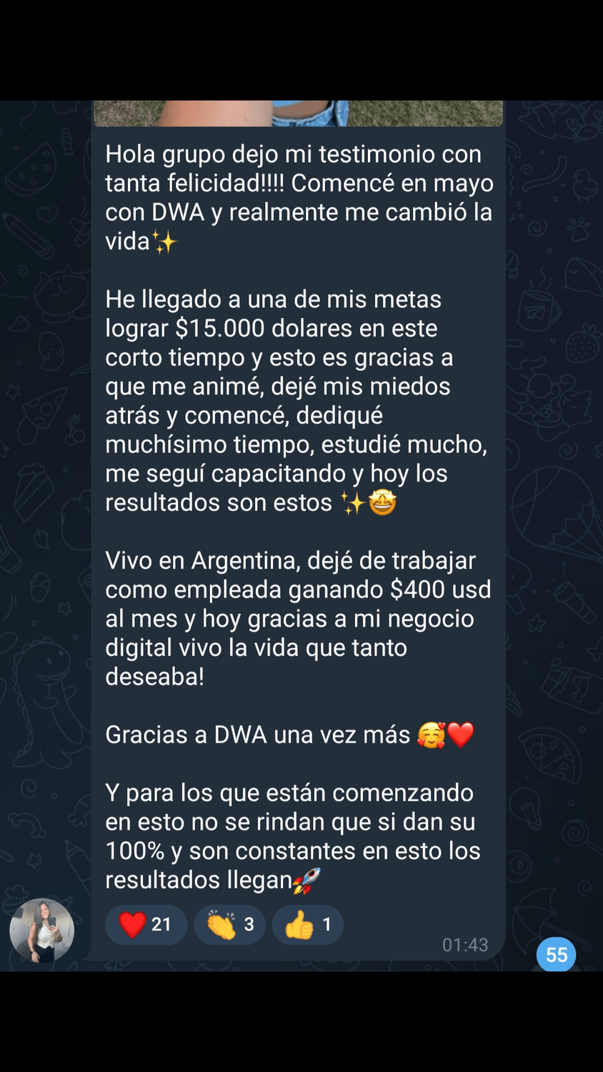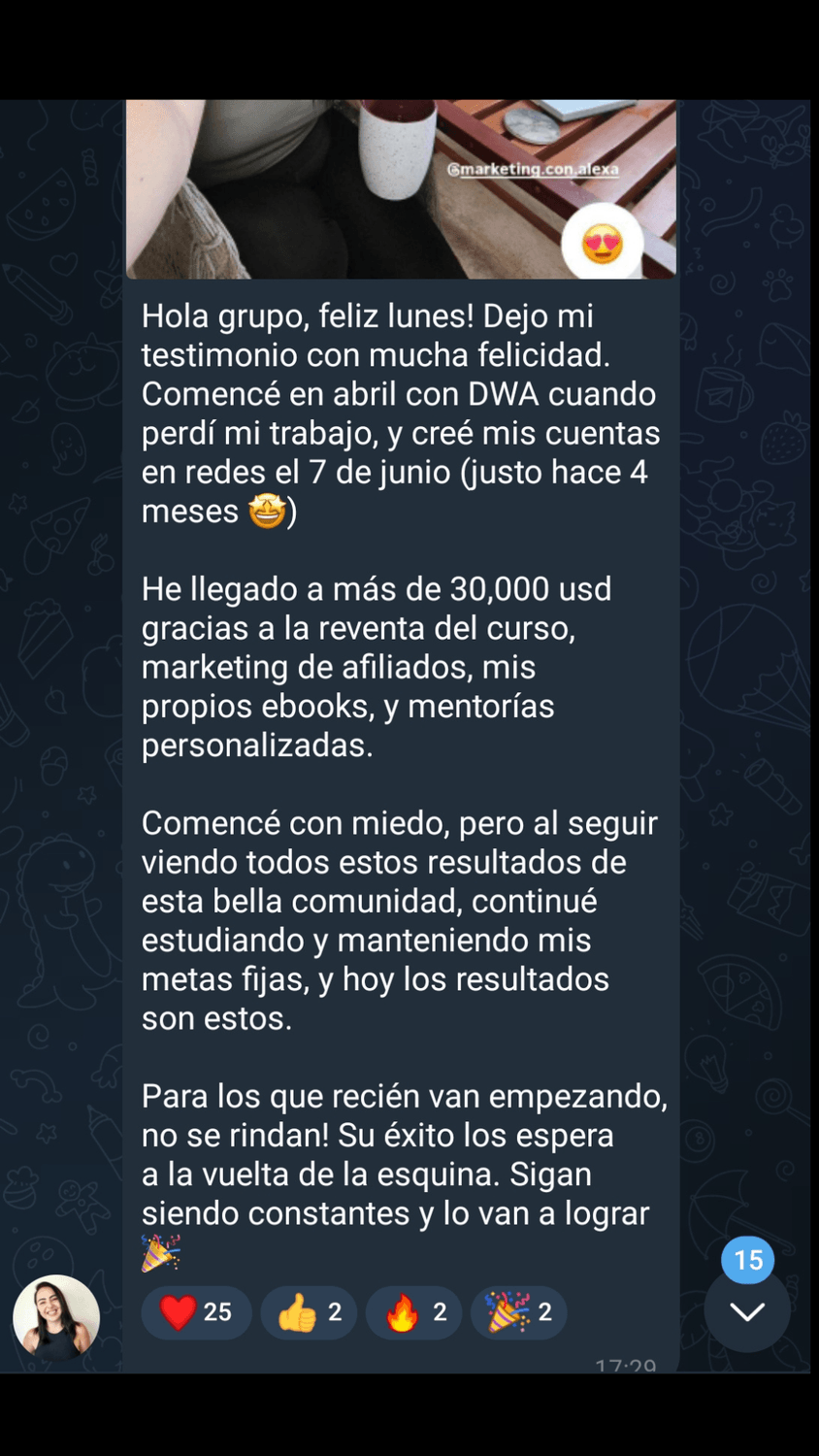 Aprendió todas las estrategias y métodos de marketing digital que te enseña DWA y lo implemento desde cero siendo principiante.